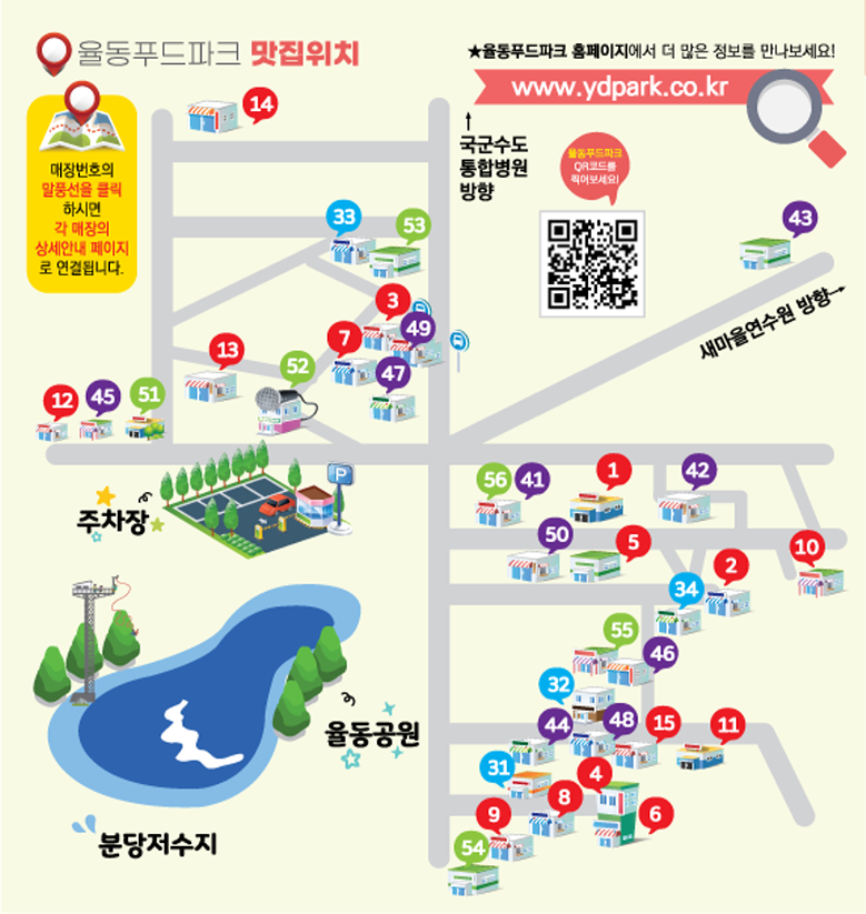 아래 사진은 율동공원 사이트에서 가져왔는데 근처에 맛집도 많아서 참고하시면 좋을 것 같네요 🍚